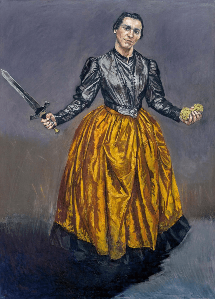 One of the greatest strengths of exhibitions is their ability to deliver an immersive experience of art that a text simply cannot provide. Viewing an artwork in person is a profoundly different experience from reading about it or seeing a small reproduction on a page. Exhibitions allow viewers to encounter the authentic objects themselves, preserving this visceral feeling. In person, one can move around the artwork, observing how light plays on its surface and how brushstrokes create texture and depth, qualities that are not available in a reproduction or textual description. Exhibitions also engage multiple senses and create an environmental context for art. Unlike a text, which primarily engages the intellect through reading, a well-designed exhibition can appeal to sight, touch and sound. Galleries often use lighting, spatial design, and occasionally audio or interactive elements to shape the visitor’s experience. These sensory cues immerse visitors in the artwork’s world. In a book, an author can only describe the appearance or effect of an artwork; in an exhibition, the viewer physically experiences it. The impact is often more visceral and memorable. The painting Angel by Paula Rego, made in 1998, confronts viewers at life-size with a figure wielding a sword and sponge, an image whose emotional intensity and scale could never be fully captured by words alone.
