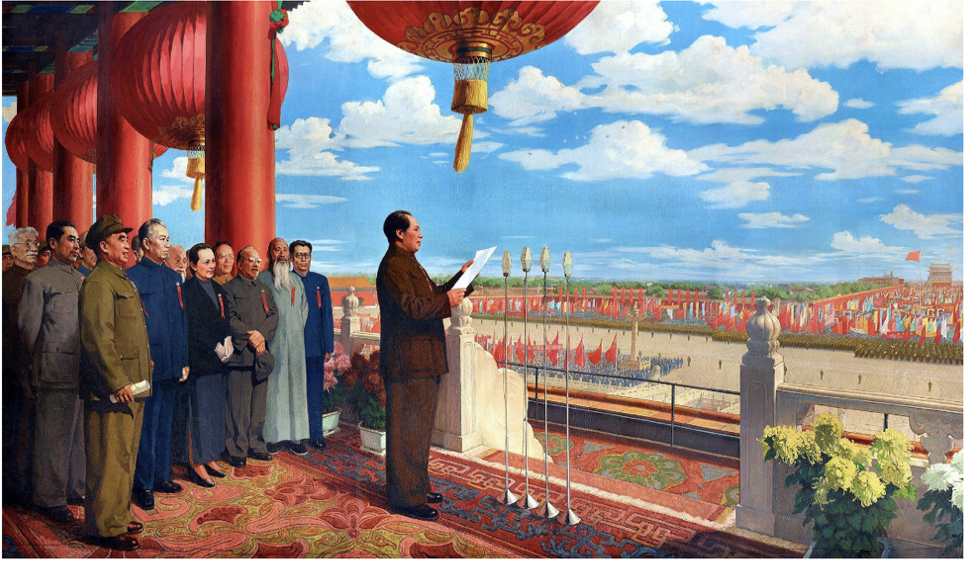 Dong Xiwen, The Founding of the Nation, 1953, copied by Jin Shangyi and Zhao Yu in 1972, and modified by Yan Zhenduo and Ye Welin in 1979, oil on canvas, 230 x 402 cm (National Museum of China, Beijing)